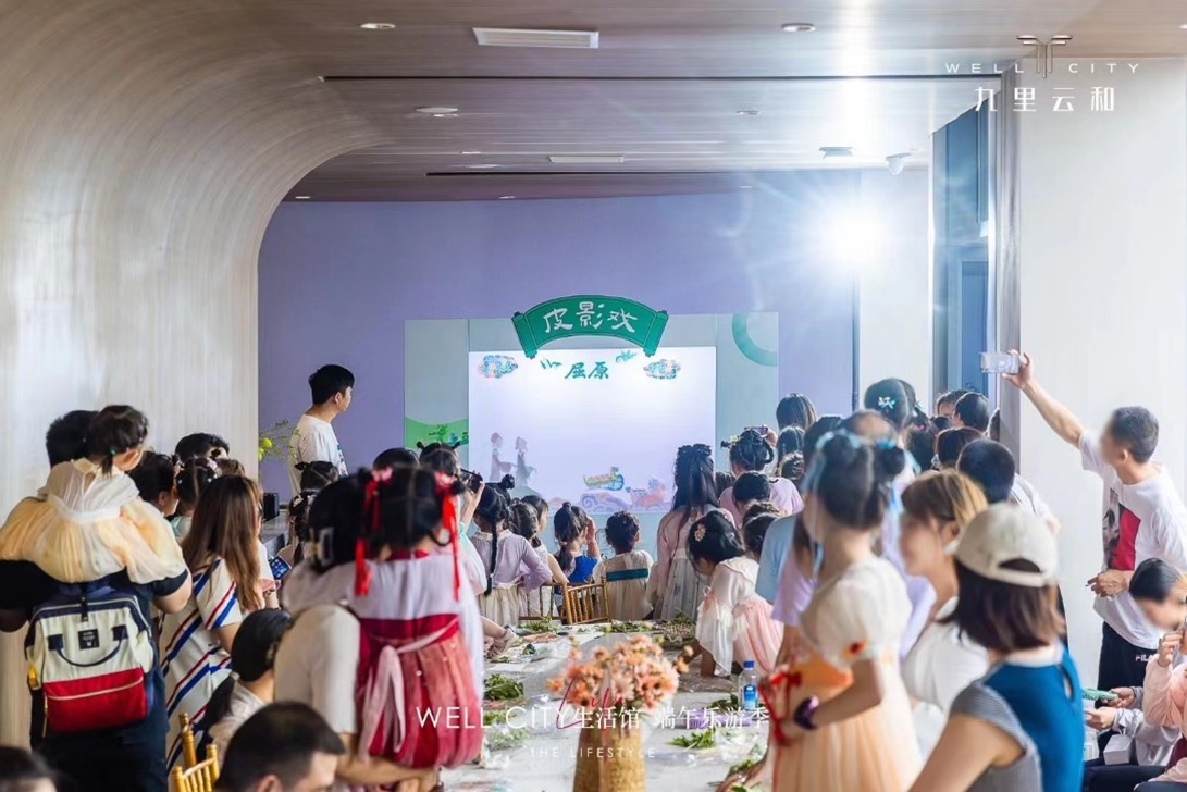 端午節(jié),當(dāng)?shù)歉咄h,或觀龍舟競渡,或遍嘗美食。端午節(jié)期間,沿海集團盛和房產(chǎn)九里云和項目舉辦端午樂游活動,坐落于通揚運河與通呂運河的臨時售樓處為陣地,帶來雄黃點額、皮影戲、五彩繩編織等多樣體驗活動,將客戶代表的生活理想與審美追求,融入傳統(tǒng)節(jié)日的內(nèi)容與儀式感中。