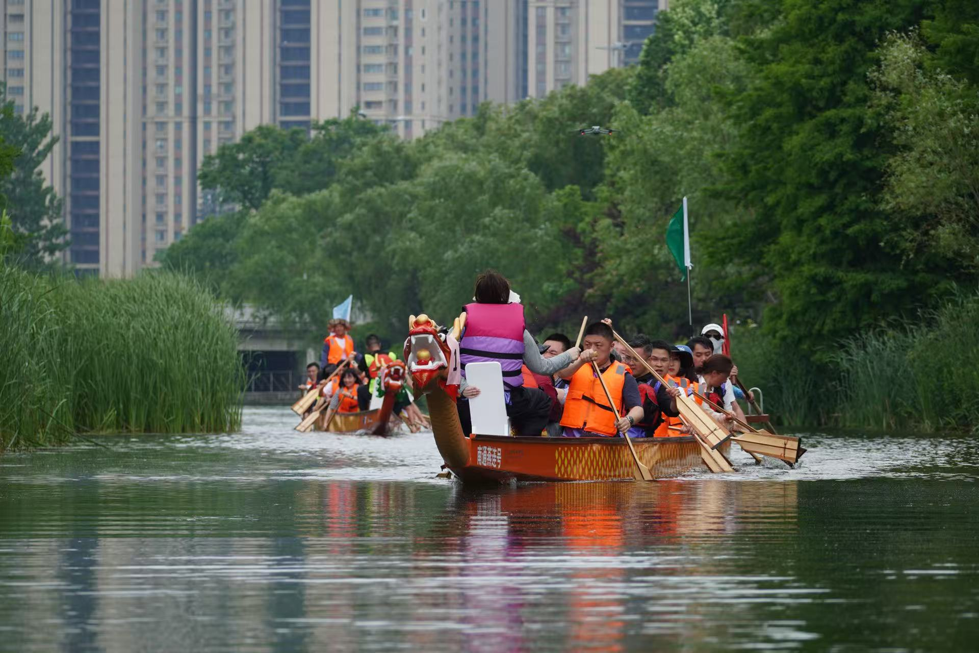 比賽過(guò)程中,各支隊(duì)伍你追我趕,競(jìng)爭(zhēng)激烈。有的隊(duì)伍起初稍顯落后,但隊(duì)員們毫不氣餒,迅速調(diào)整節(jié)奏,憑借著頑強(qiáng)的毅力和默契的配合,逐漸迎頭趕上;有的隊(duì)伍一馬當(dāng)先,始終保持領(lǐng)先優(yōu)勢(shì),展現(xiàn)出強(qiáng)大的實(shí)力。在龍舟競(jìng)技中,隊(duì)員們深刻體會(huì)到了團(tuán)隊(duì)合作的重要性。只有心往一處想,勁往一處使,聽(tīng)從指揮,相互配合,才能讓龍舟快速前進(jìn)。每一次劃槳的力度、速度和方向都需要團(tuán)隊(duì)成員高度一致,任何一個(gè)人的失誤都可能影響整體的節(jié)奏。