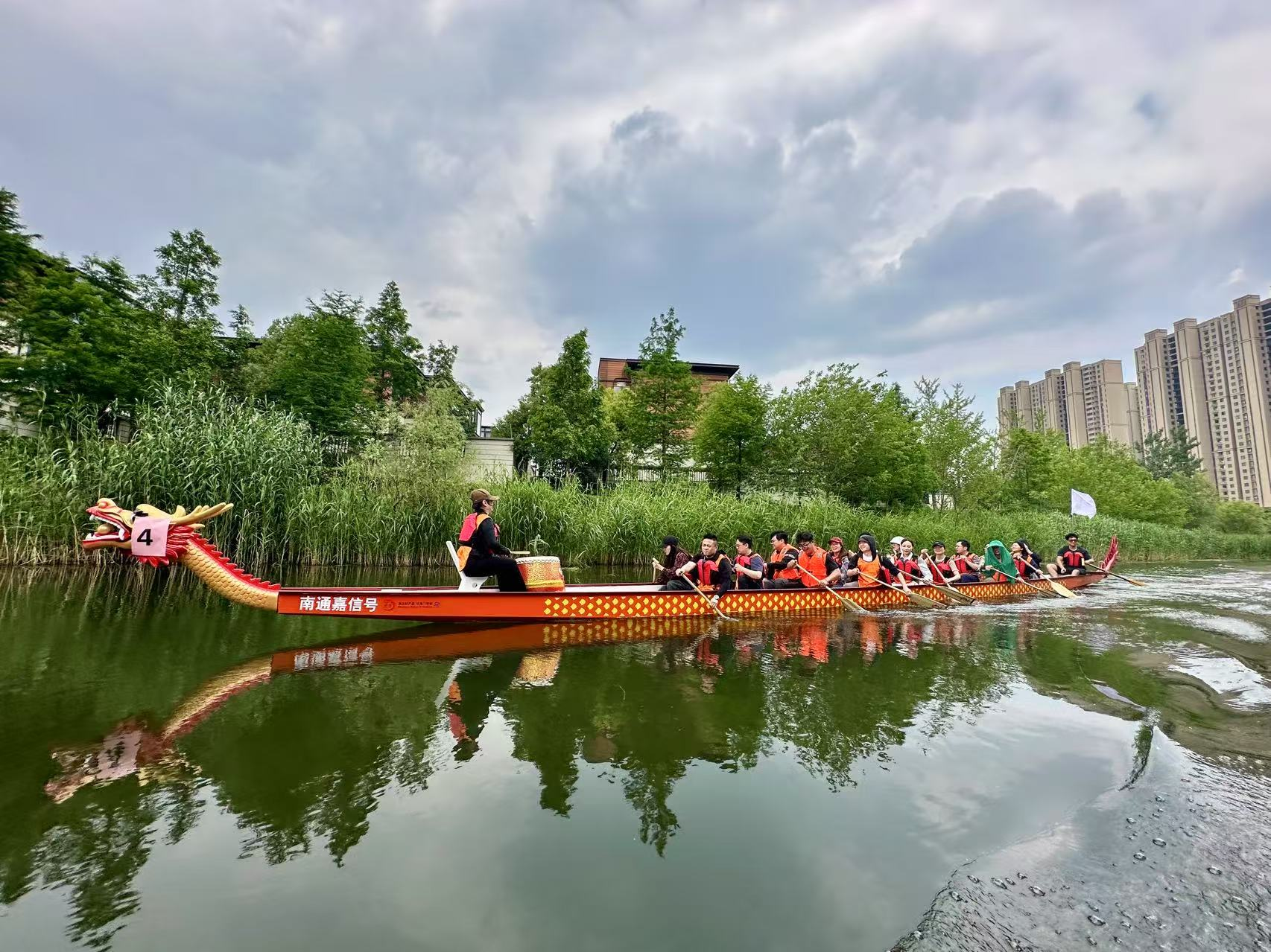 除傳統(tǒng)破冰及團(tuán)建游戲外,員工們對(duì)本次拓展的重頭戲——龍舟競(jìng)技尤為感興趣,個(gè)個(gè)都摩拳擦掌、躍躍欲試。隨著裁判一聲令下,龍舟如離弦之箭,在水面上飛馳。船頭的鼓手奮力擊鼓,節(jié)奏鏗鏘有力,鼓舞著隊(duì)員們的士氣;劃槳的隊(duì)員們整齊劃一,喊著響亮的口號(hào),伴隨著鼓點(diǎn)奮力劃動(dòng)船槳,濺起朵朵水花。一時(shí)間,水面上鼓聲、吶喊聲、助威聲此起彼伏,熱鬧非凡。